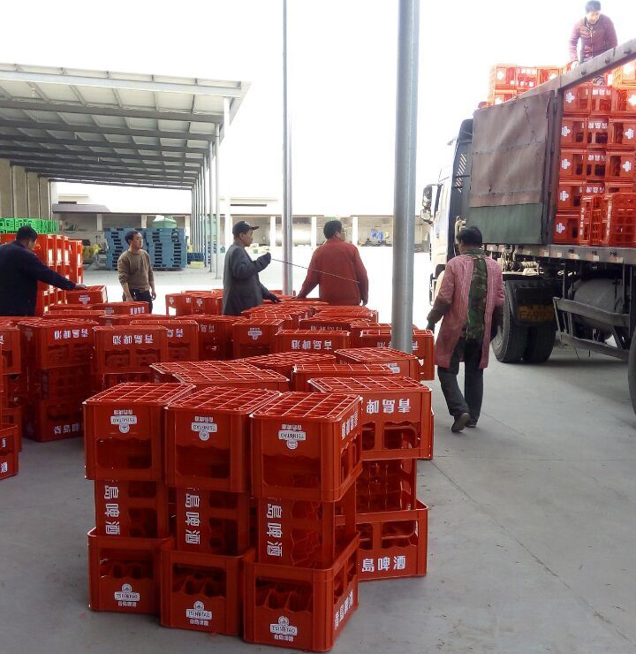 青島啤酒專用啤酒筐裝車發走